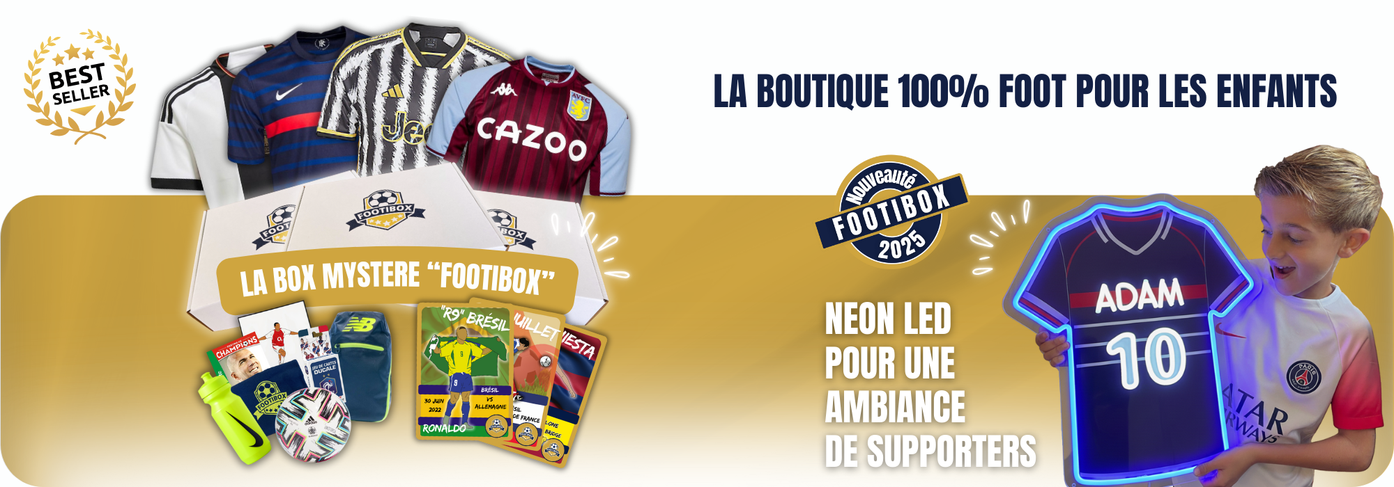 C’est un coffret surprise pensé pour les jeunes fans de foot âgés de 6 à 14 ans ! Un maillot officiel (club ou sélection), un accessoire 100% foot et une carte collector... Le tout livré dans une box qu’on a hâte d’ouvrir. Le but ? Des étoiles dans les yeux à chaque ouverture.